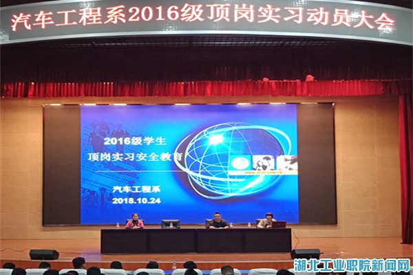 10月24日下午,汽车工程系在图书馆会议中心召开了2016级员工顶岗实习动员大会,汽车工程系主任张健、党总支书记王俐凤、副书记梁军萍以及16级辅导员和全体16级毕业生参加了此次会议。会上,张健就顶岗实习期间的具体工作和要求进行了全面的安排和部署,阐述了顶岗实习的重要意义,要求同学们人人参与实习、服从实习单位的管理、与辅导员和校内指导老师保持密切联系,勉励同学们发扬吃苦耐劳的精神,在实习岗位上积累知识、放宽眼界,通过顶岗实习这次预就业课程完成“破茧成蝶”的蜕变,成为“会学习、会做人、会做事和有技能”的高素质人才,为今后的就业和职业发展打下良好的基础。党总支书记王俐凤就顶岗实习期间同学们应该注意的安全问题做了详细的讲解,提醒同学们注意人身和财产安全,全体同学对实习安全有了进一步的认识。