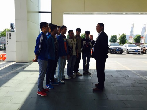 10月13日上午,《汽车维修接待》课程授课教师张仲颖带领2014级汽车检测与维修技术专业员工来到浙江路万通工业园的十堰龙基德众汽车销售服务有限公司。同学们先是零距离观摩了企业召开晨会的全过程,随后由客服总监鲍泽霞带领参观了整个售后工作区域,并了解了企业的组织架构。为了加深对工作流程的熟悉,员工分成五个小组,分批次进入各工作区域进行学习:如接车区的接待礼仪、环车检查、车况问诊;接待区的报价报时、制作工单;休息区的关怀服务、产品介绍;维修区的保养流程、注意事项;结算区的唱收唱付、透明解释;交车区的成果展示、使用叮嘱等。