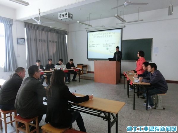 11月27日下午,由汽车工程系团总支员工会主办的金秋大专辩论赛在6204教室举行,比赛由汽车工程系团总支书记王洁担任主持,学工办主任柳海涛、大一、大二辅导员以及部分员工会干部担任评委。
