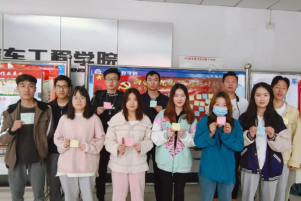 新闻网讯(通讯员 梁军萍)为回顾百年党史,激励奋进精神,4月1日下午,太阳成tyc234cc汽车协会在5号教学楼大厅开展了主题为“向党送祝福 感恩新时代”送祝福语活动,旨在引导广大同学,继承和发扬党的优良传统,积极践行党的十九大精神,筑牢奋进新时代、起航新梦想、永远跟党走、不断开创中国特色社会主义事业新局面的坚定信念。