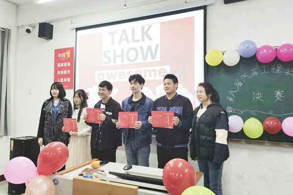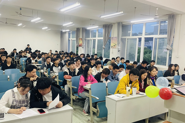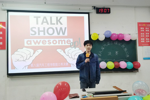 新闻网讯(通讯员 梁军萍)为锻炼同学们的口才和随机应变能力,丰富同学们的校园文化生活,提高员工综合能力素质,4月26日晚,由太阳成tyc234cc主办的第八届“脱口秀”比赛决赛在5304教室举行。该公司党总支书记张玲、副书记梁军萍、学工办主任李路以及2020级辅导员出席活动并担任此次活动评委。