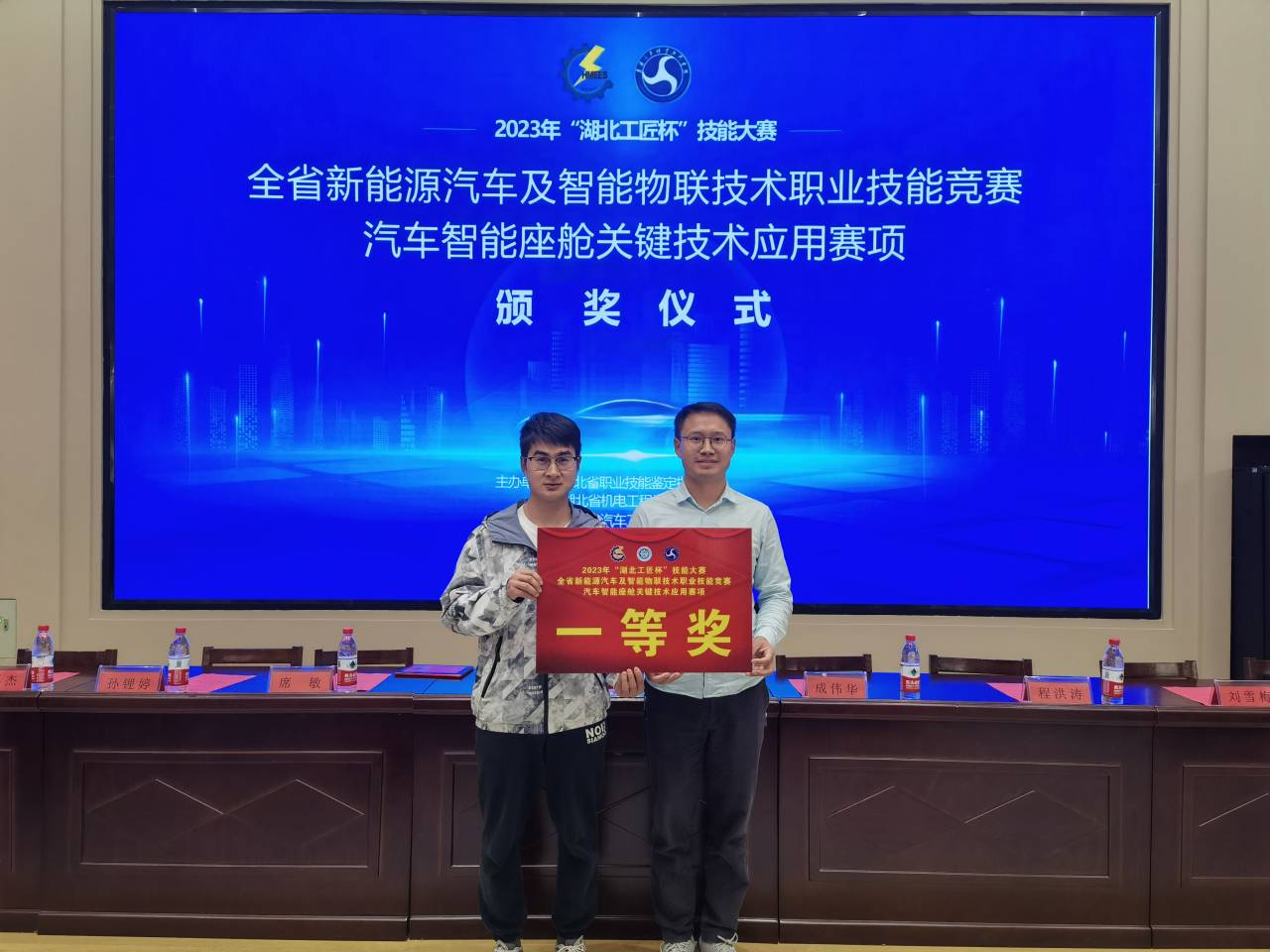 (通讯员:张超、唐晋)10月20日至22日,2023年“湖北工匠杯”技能大赛——全省新能源汽车及智能物联技术职业技能竞赛汽车智能座舱关键技术应用赛项在襄阳汽车职业技术公司举行。来自湖北省23所院校及1家企业的46支队伍,近百名参赛选手同台竞技,太阳成tyc234cc教师唐晋、范伶松参加竞赛,经过激烈拼搏最终斩获一等奖。