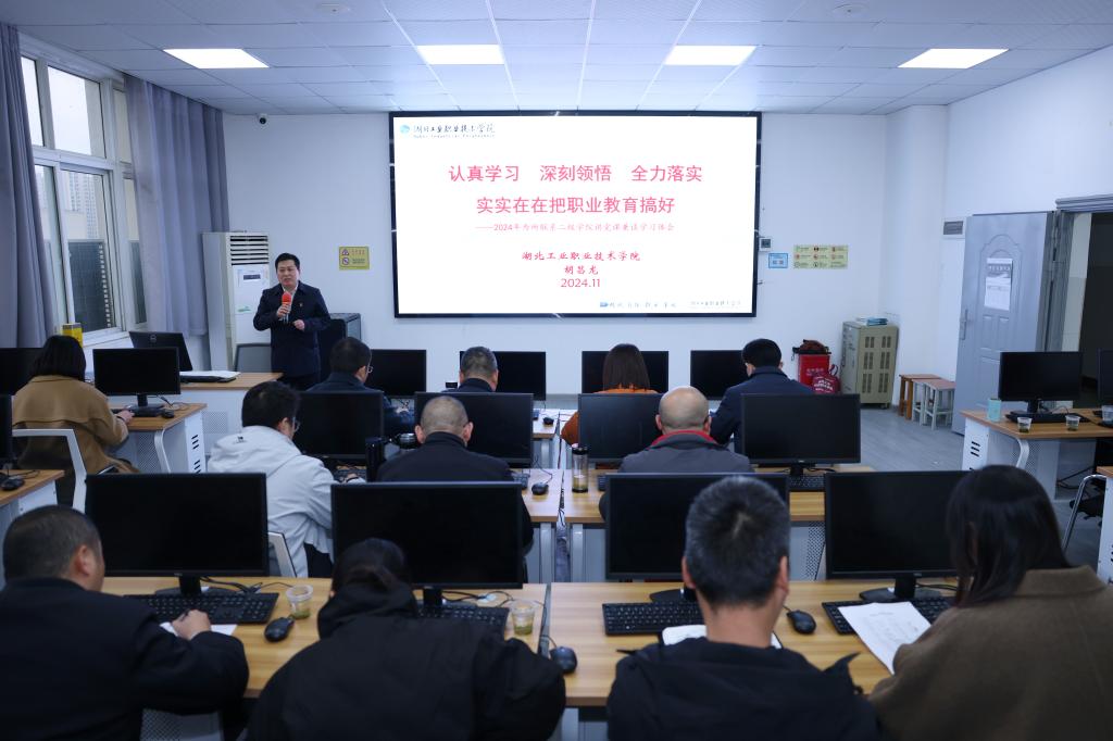 党课中,胡昌龙分享了他在国家教育行政公司高校领导干部进修班的学习收获,梳理了党的二十大、二十届三中全会和全国教育大会有关职业教育的重要精神,领学了习近平总书记关于职业教育的重要论述和教育部关于高职教育的新要求,提出职业院校要在服务国家战略和区域发展中找准办学定位,在服务产业发展中找到办学特色,在助力大国外交中找准国际合作,在夯实内涵建设中找到价值地位,在数字化转型发展中找到新动能,在党建引领发展中找到力量源泉。胡昌龙强调,全体教职工要坚定信心,按照公司既定的办学理念、目标和举措,坚持不懈、实实在在抓落实;要改革创新,围绕国家战略、区域发展和产业需要,结合公司实际,调整优化专业设置,着力强化市域产教联合体、行业产教融合共同体和“五金”建设;要真抓实干,边探索实践边总结宣传边理论研究;要团结奋斗,党建引领、思政铸魂,实现党建与业务深度融合,以高质量党建促进公司事业高质量发展。