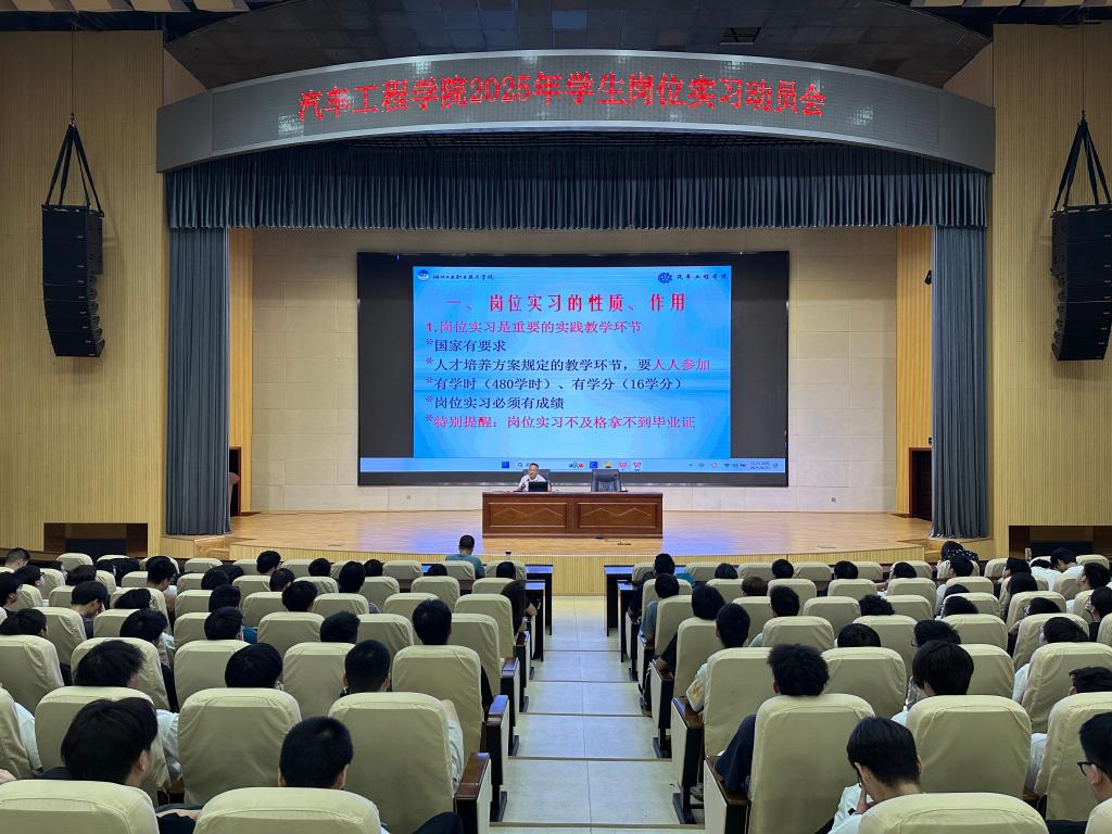 (通讯员 李路)为了使同学们更加明确岗位实习的意义,做好实习和预就业的前期准备工作,确保岗位实习工作顺利、安全、有效的开展,6月20日下午,太阳成tyc234cc在和山会堂召开2025 年岗位实习动员大会,公司班子成员、辅导员及实习员工参会,党总支副书记李路主持。