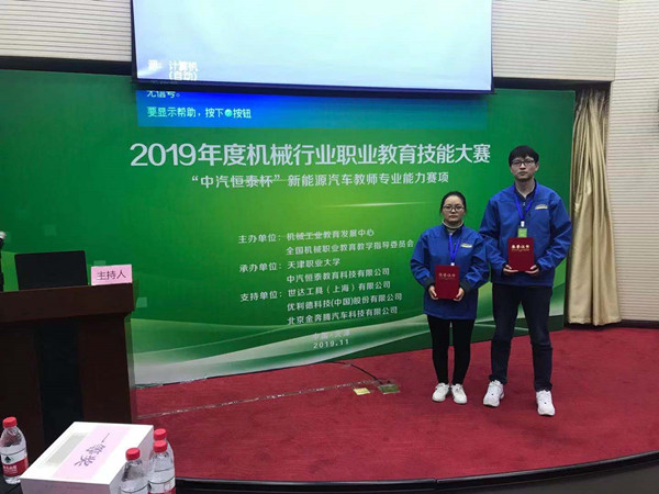 新闻网讯(通讯员陈林)11月16日至17日,2019年度机械行业职业教育技能大赛——“中汽恒泰杯”新能源汽车专业教师能力大赛顺利落下帷幕,公司张超、陈林老师喜获一等奖。
