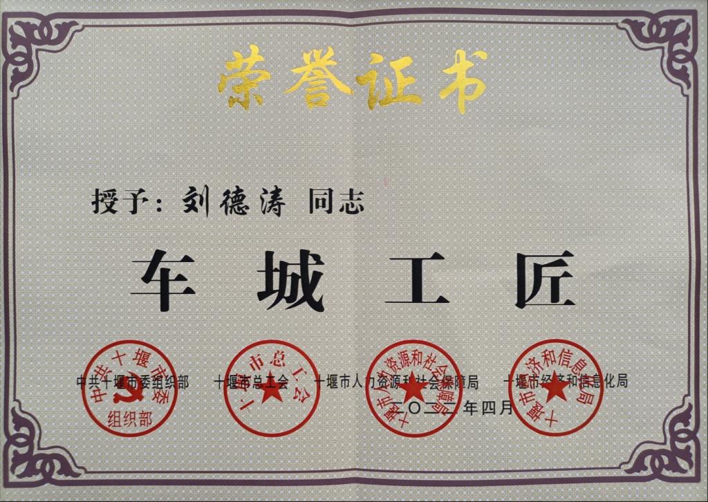 【技能星】公司教师刘德涛获十堰市第四届“车城工匠”荣誉称号